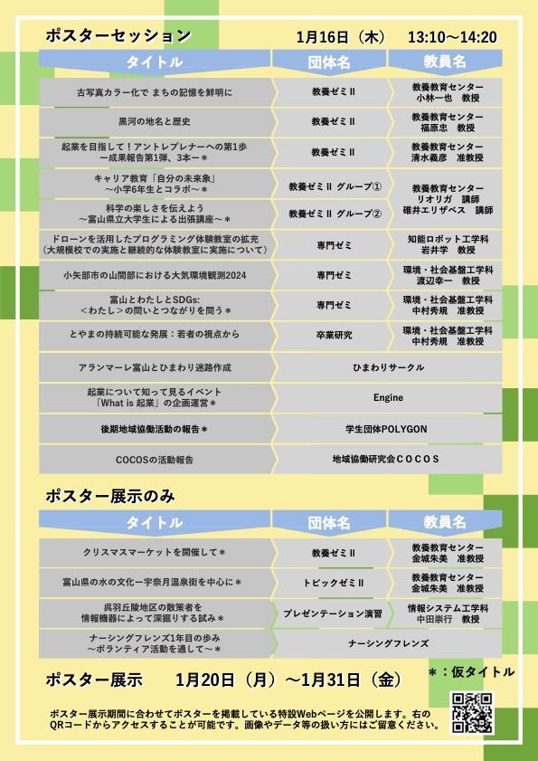 令和6年度後期地域協(xié)働授業(yè)成果発表會(huì)を1/16(木)に開催します。
