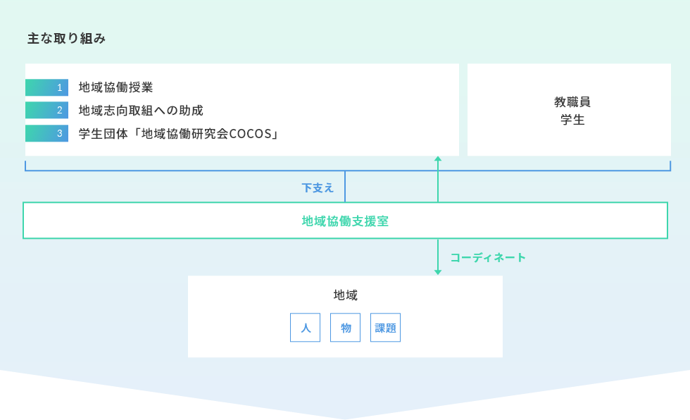 教員による「地域志向研究」および「地域志向教育プログラム」、學(xué)生団體による「學(xué)生自主プロジェクト」の三部門(mén)において、それぞれ學(xué)內(nèi)公募からの審査を経て、地域との協(xié)働取組を助成しています。